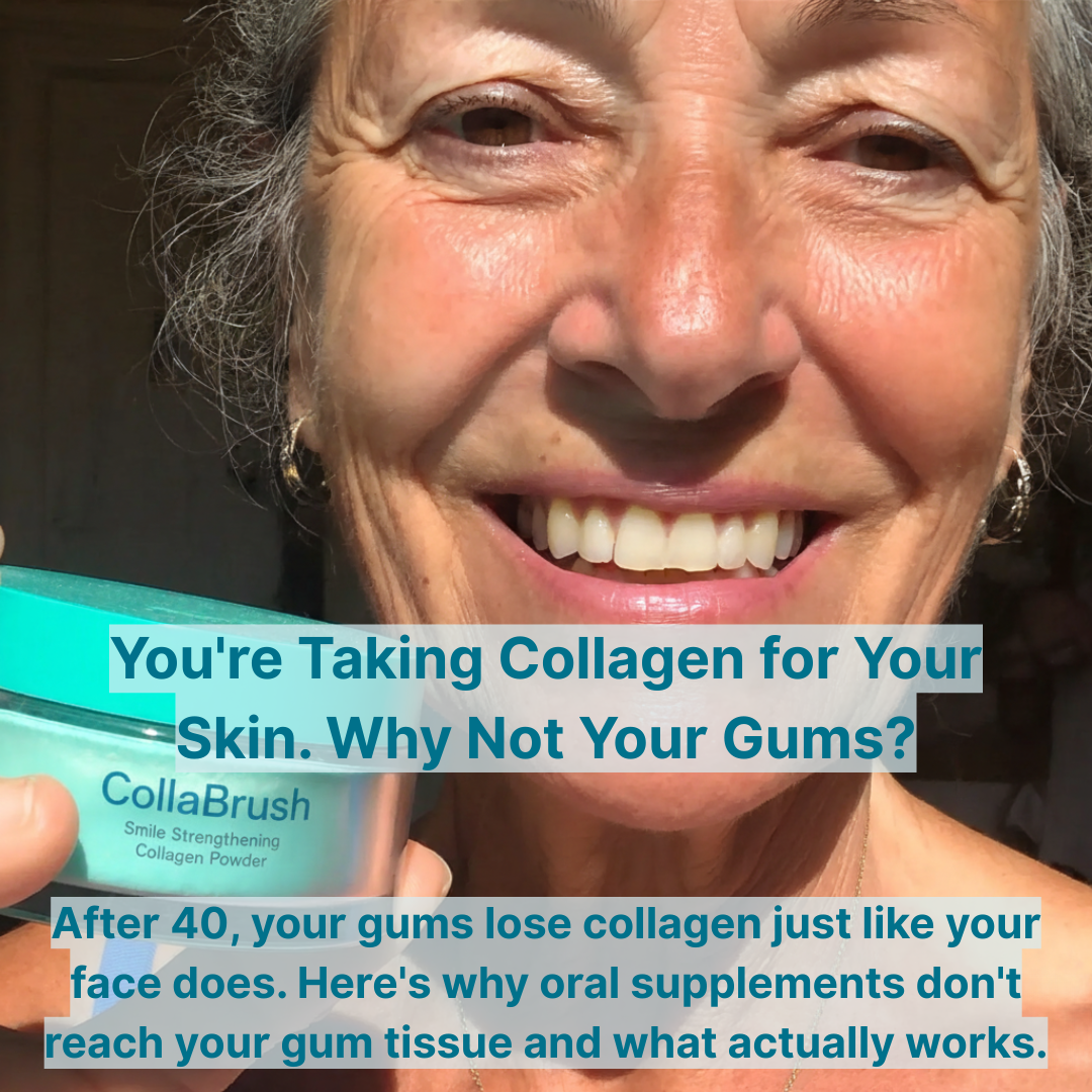 That's why you can take collagen religiously for your skin and joints—and still watch your gum line recede. The collagen isn't reaching your gum tissue in the concentration it needs.