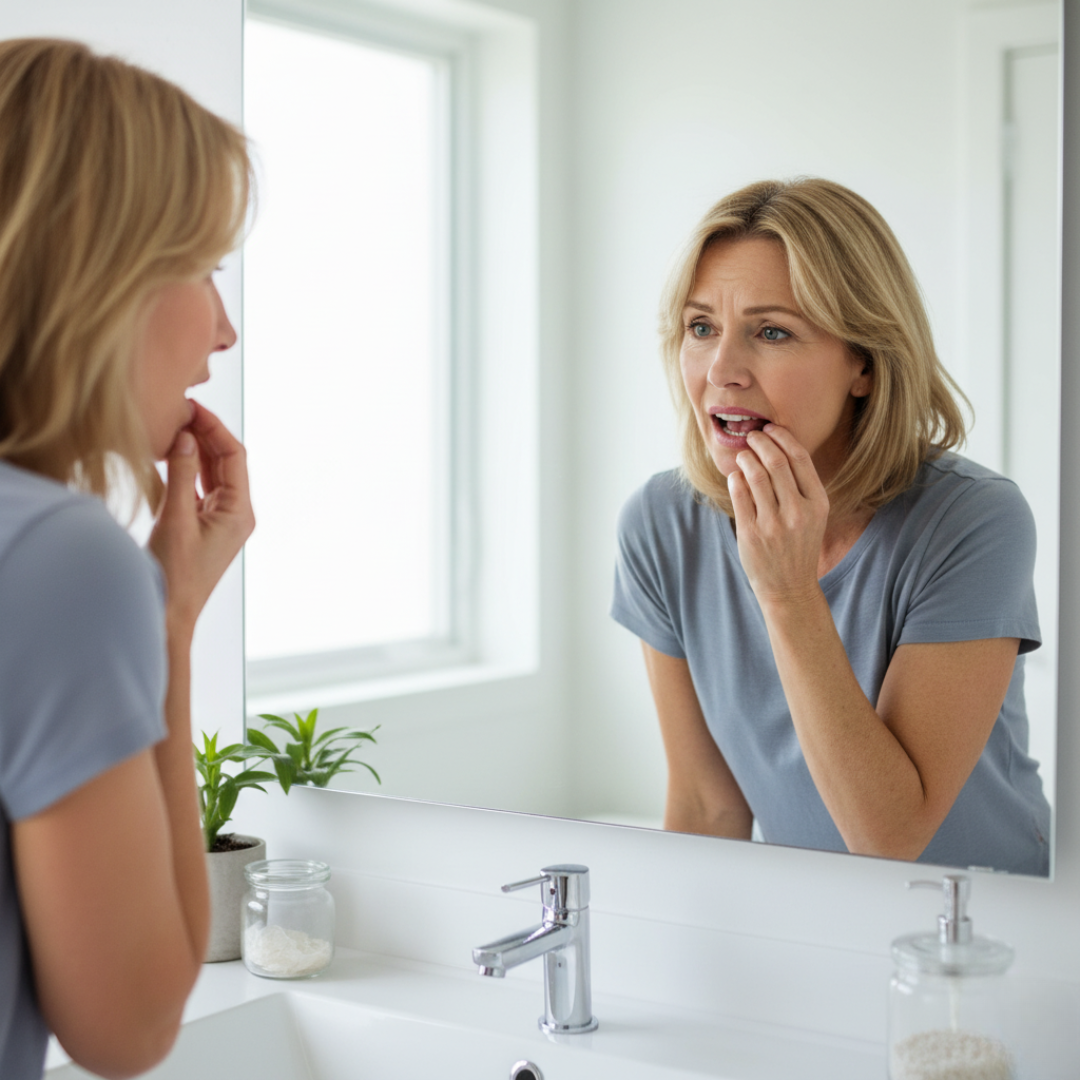 You've noticed your gums receding. Your teeth look longer. You do that closed-lip smile now—or avoid the camera altogether.