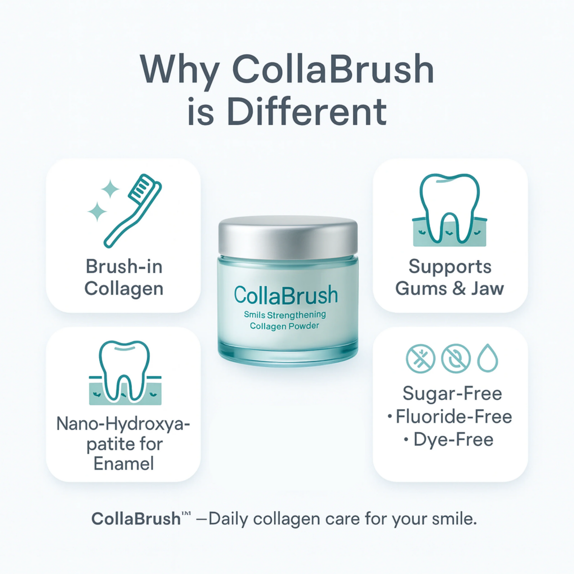 4. Daily Reinforcement Unlike surgery (one-time trauma) or pills (hit-or-miss delivery), brushing collagen into your gums every day creates consistent, cumulative support over time.