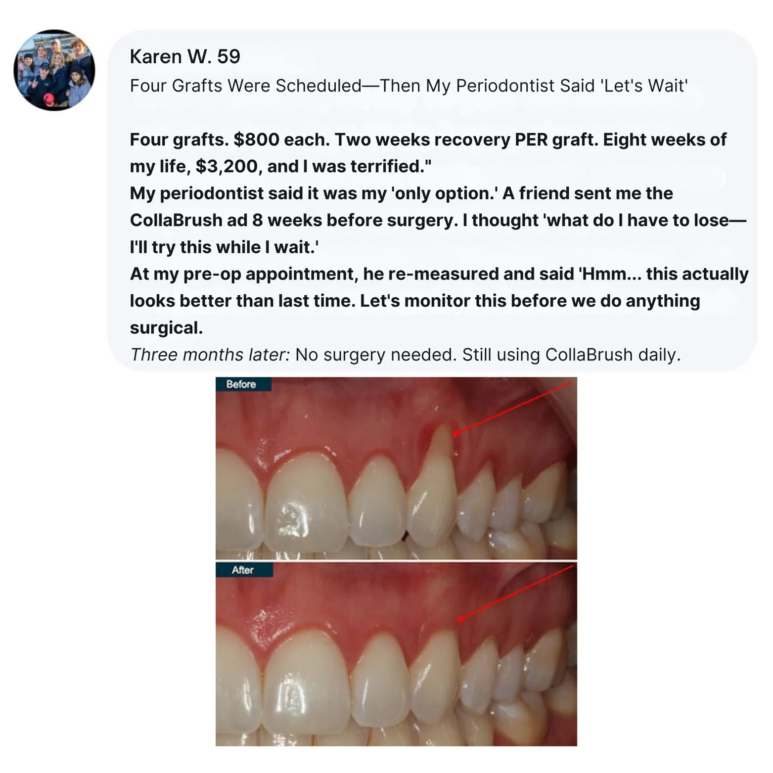 This is why women who've "tried everything" finally see results with CollaBrush. It's not another toothpaste. It's targeted collagen delivery for tissue that's been depleted.